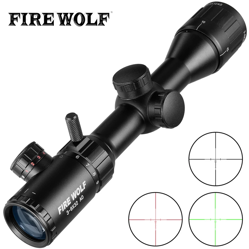 - 3-9x32 AO Tactical Hunting Riflescope Green Red Cross Illuminated Range Finder Reticle Optics Sight Air Rifle Scope Sniper Caza